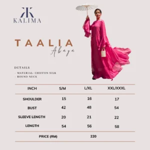 Elevate your style and reduce your carbon footprint with the KALIMA New Taalia Dress Abaya Sustainable Series! Made from high-quality sustainable fabric, this abaya features an elegant and modern design that will make you stand out at any occasion. Its comfortable fit and eco-friendly materials make it the perfect choice for the fashion-forward and environmentally conscious individual.